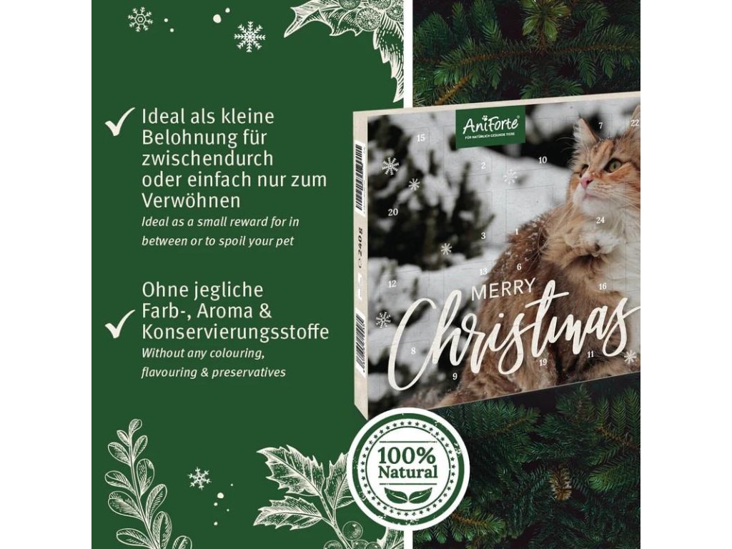 Náš jedinečný kočičí adventní kalendář AniForte® obsahuje 24 malých překvapení pro vašeho čtyřnohého přítele.
