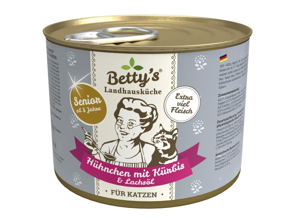 Betty's venkovská kuchyně pro kočky seniory - kuře s dýní a lososovým olejem