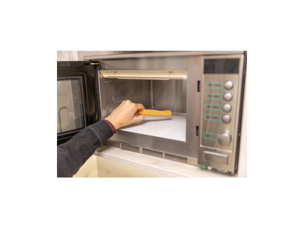Malé kousky pamlsku nebo celý pamlsek nechte pod dohledem nafouknout v mikrovlnné troubě po dobu 49 až 90 vteřin.