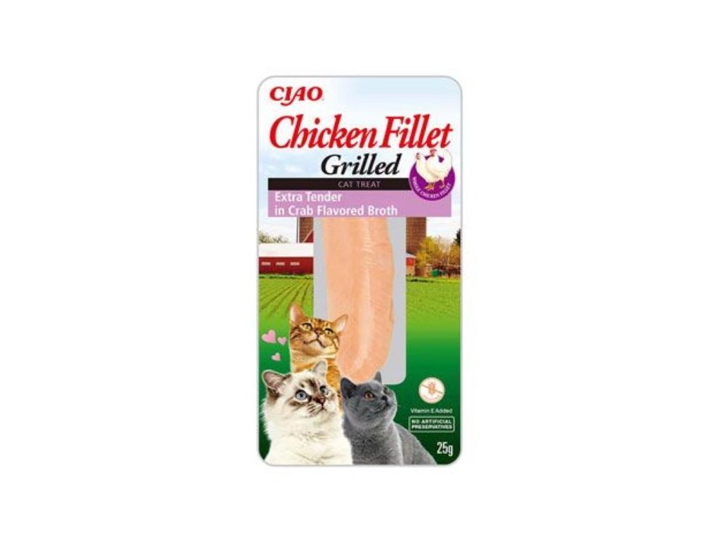 Lahodný, grilovaný, ručně nakrájený kuřecí řízek ve slaném vývaru, aby pomohl udržet vlhkost, kterou vaše kočka potřebuje. Každý filet je vakuově zabalen pro čerstvost do inovativní balicí fólie s UV filtrem.