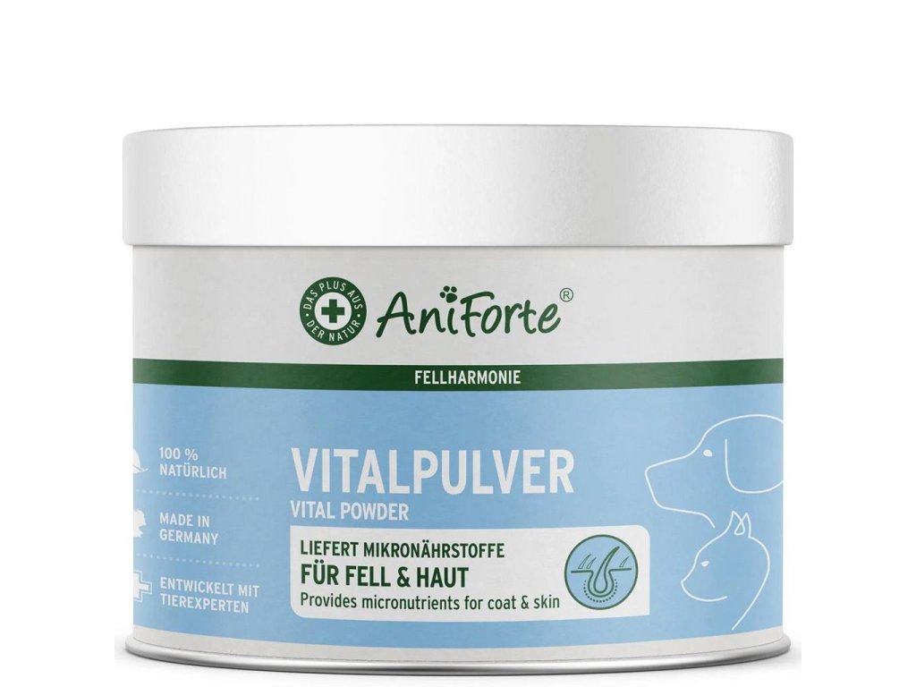 AniForte® Fellharmonie Vital Powder je založen na pečlivě upraveném složení pro zdravou srst a neporušenou kůži a zajišťuje ideální péči o vašeho mazlíčka. Vysoce kvalitní produkt se těší vysoké míře přijetí a lze jej snadno přimíchat do denního krmiva.