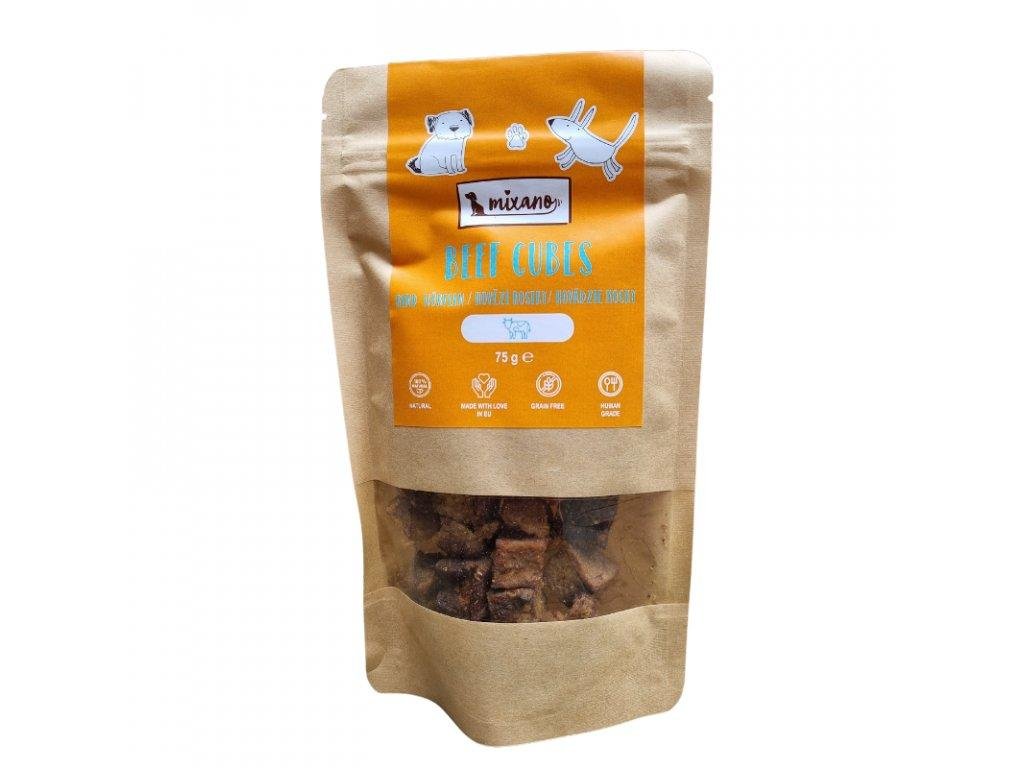 Hovězí kostky jsou ze 100 % hovězího masa. Lze využit při výcviku jako tréninkové pamlsky nebo jako dezert po jídle. Hovězí maso je velmi dobře stravitelné a hlavně chutné. Má vysoký podíl bílkovin, které jsou základem pro buňky a tkáně.