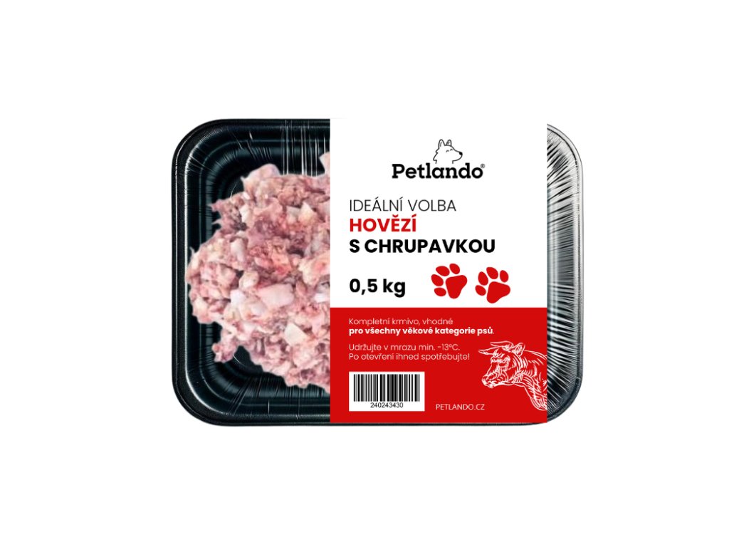 Hovězí maso z české farmy balené v praktické vaničce 0.5 kg, kterou po rozmrazení můžete ihned podávat vašemu psímu parťákovi, bez nutnosti další misky. Doporučujeme doplnit krmnou dávku o vitamíny: