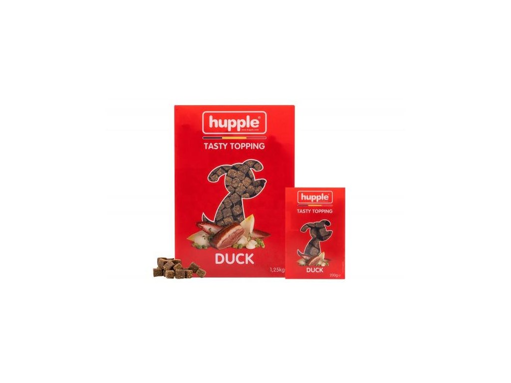 - Kachní topping je součástí oživení stávajícího krmiva s vysokým obsahem masa. Může sloužit jako doplněk krmiva, odměna nebo i pro vybíravé psy, kteří touží po změně a dochucení krmiva. Výživnou kachnou ošálíte čichové smysly přisypáním malého množství toppingu ke stávajícímu krmivu a váš pes bude náležitě spokojen.