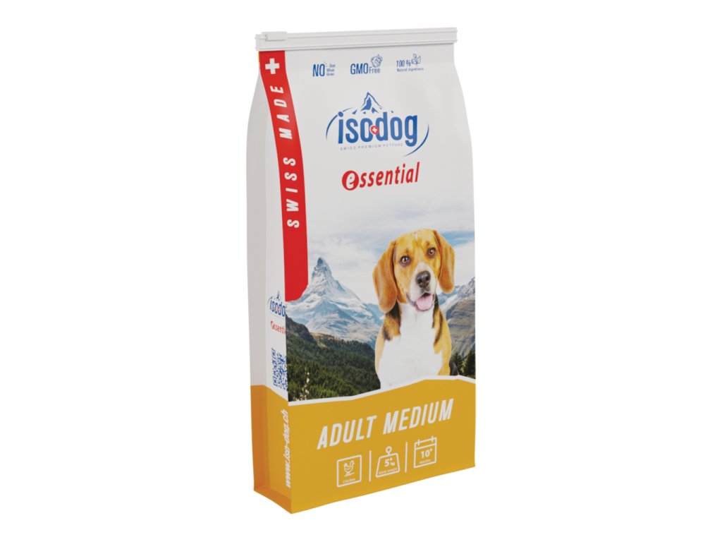 Iso-dog Essential Adult Medium je vysoce kvalitní kompletní krmivo. Je určen pro dospělé psy středních plemen (>10 kg) s normální úrovní aktivity.
