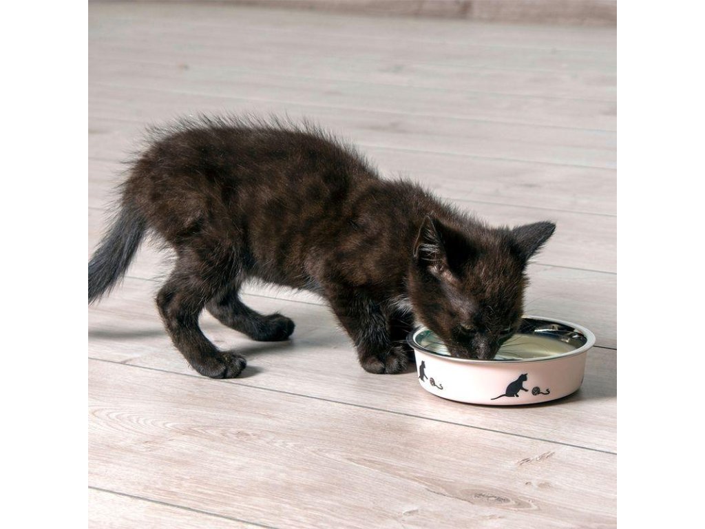 Díky své nízké výšce je miska na krmení vhodná zejména pro koťata a kočky krátkonosých plemen . Je vyrobena z hygienické nerezové oceli a je vybavena odnímatelným pryžovým kroužkem na základně, který dodává nádobě stabilní stojan. Misku pro kočky Karlie Ascar můžete použít jako misku na vodu i na mokré i suché krmivo a na přání ji můžete snadno mýt v myčce.