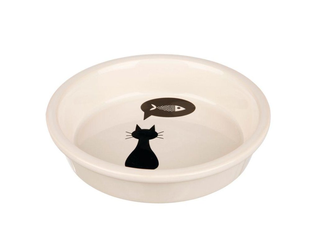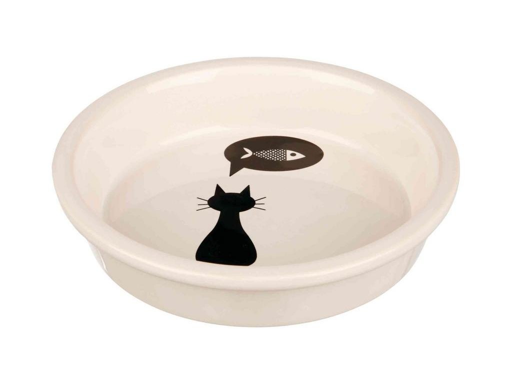 Keramická miska s černou kočkou, s okrajem bílá 13 cm