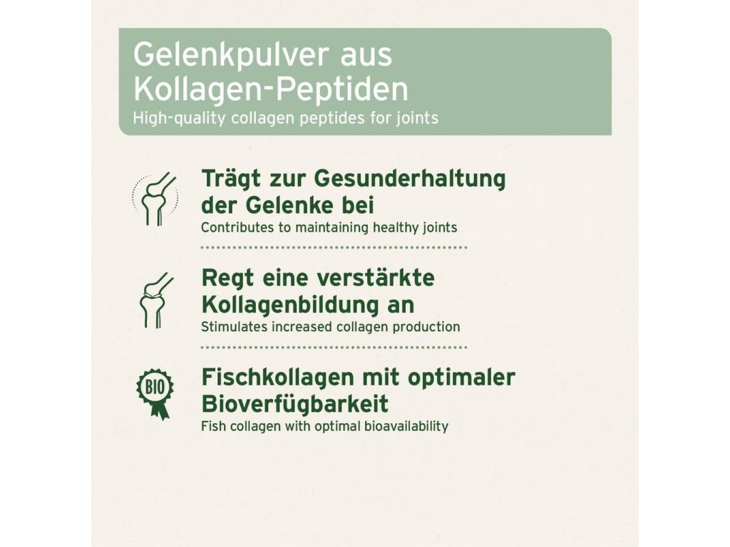 Kolagen se nachází v kůži, stejně jako v kloubech, šlachách, vazech a chrupavkách. Jak psi stárnou, produkují méně kolagenu, díky čemuž jsou náchylnější k problémům s klouby a kostmi. Pomocí kolagenových peptidů, kterými náš kolagenový prášek psy krmí, lze stimulovat klouby k produkci více kolagenu a tím pozitivně ovlivnit pohybový aparát. Kromě toho může být zachována syntéza kolagenu a cévní průtok krve.