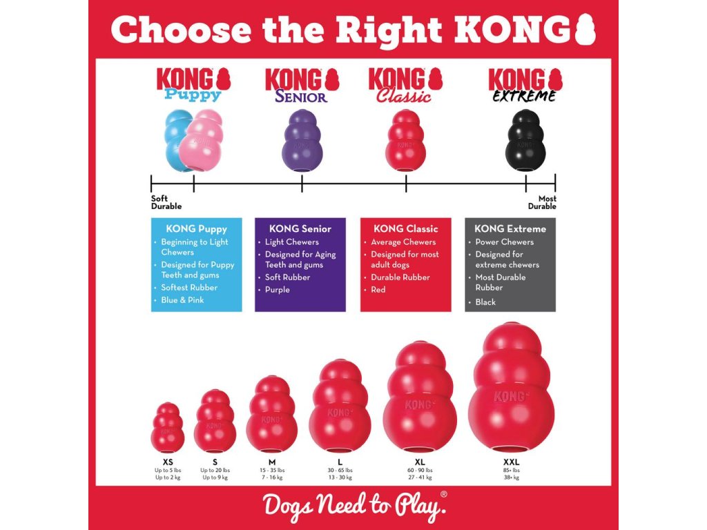 Jedinečné složení přírodního červeného kaučuku KONG Classic, které nabízí obohacení tím, že pomáhá uspokojit psí instinktivní potřeby, je ultra odolné s nepravidelným odrazem, což je ideální pro psy, kteří rádi žvýkají, a zároveň naplňují psí potřebu hrát si.