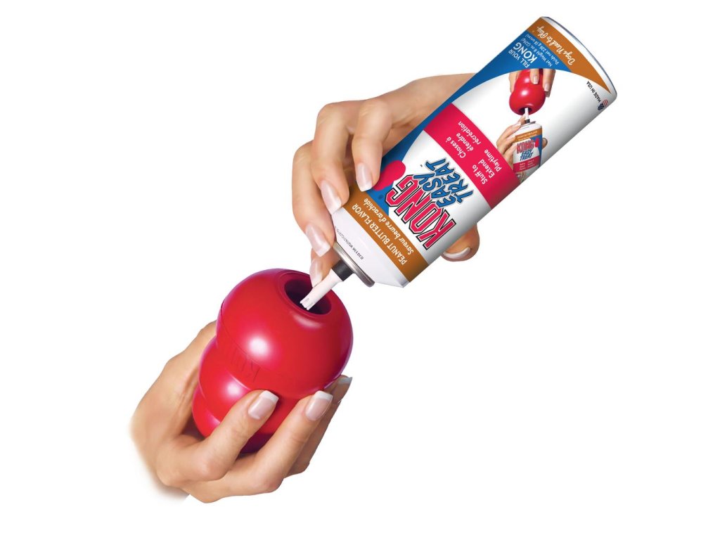 Chcete si prodloužit dobu hraní? Nezapomeňte naplnit lákavými kousky granulí a nalákat špetkou arašídového másla. Přidejte k zábavě KONG Snacks a zálivku s KONG Easy Treat.