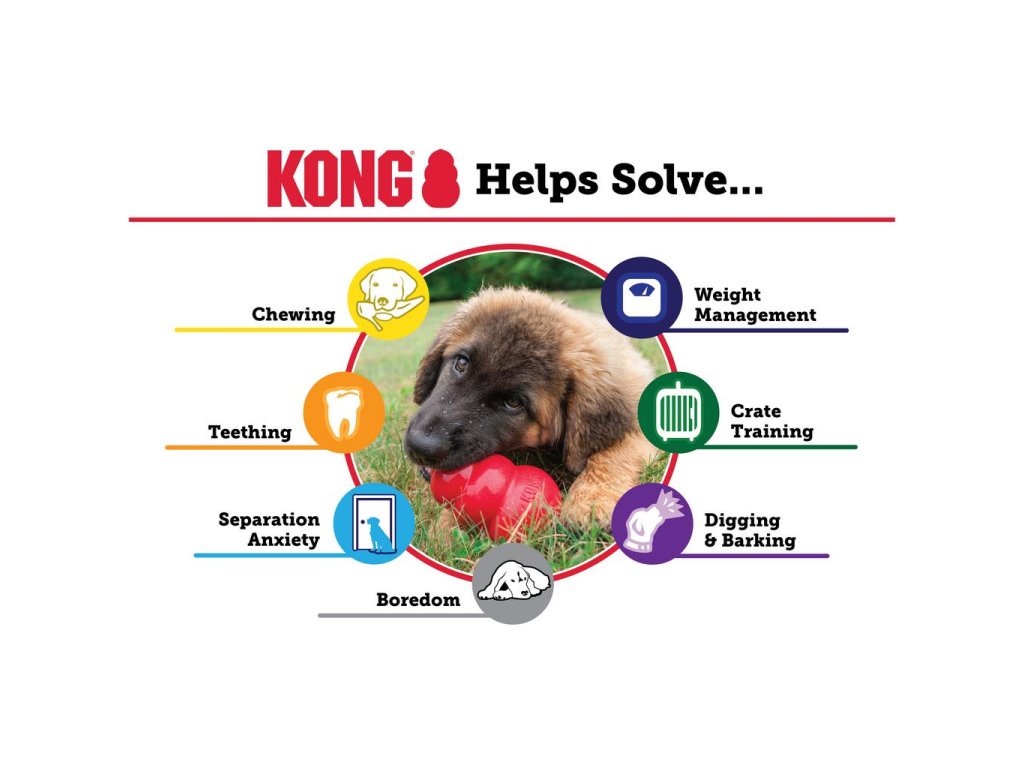 Psychicky stimulující hračka; nabízí obohacení tím, že pomáhá uspokojovat instinktivní potřeby psů KONG klasická červená pryžová receptura pro průměrné žvýkačky Nepředvídatelný odraz pro hry aportu Skvělé pro nádivku KONG Easy Treat; Svačiny nebo Ziggies Doporučeno veterináři a trenéry po celém světě.