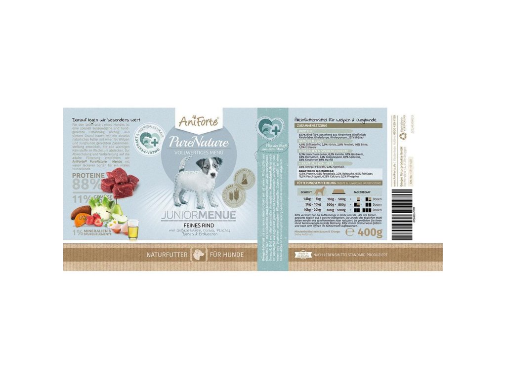 Mokré krmivo AniForte® PureNature je vysoce kvalitní jednoproteinové kompletní krmivo pro psy v superprémiové kvalitě - vyrobené v Německu podle potravinářských norem. Tajemstvím naší kvality je velké množství čerstvého a kvalitního masa, které pro AniForte® PureNature používáme.