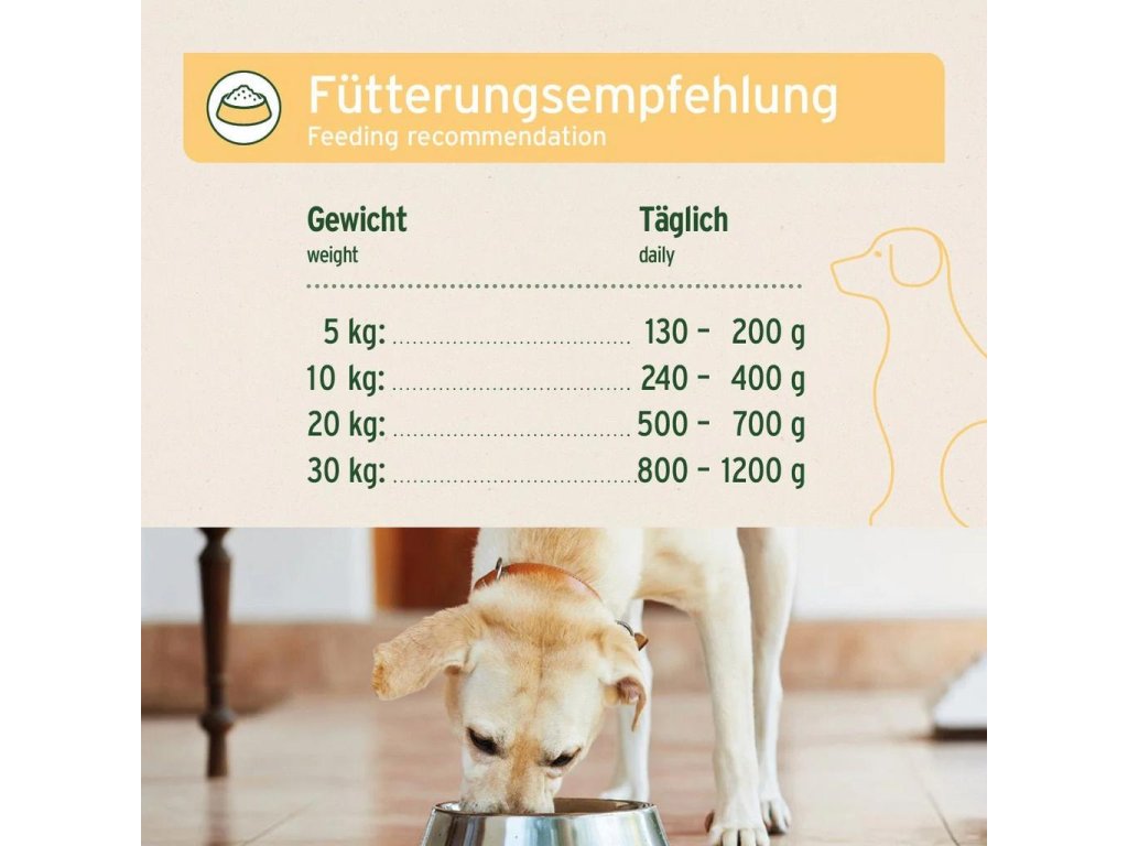 Dobrá pohoda prochází i u psů žaludkem a důležitá je vyvážená a pestrá strava, která je speciálně přizpůsobena psovi. Z tohoto důvodu bylo naším cílem vyvinout absolutně přirozené krmivo s kombinací mnoha důležitých živin, která je pro psy přátelská.