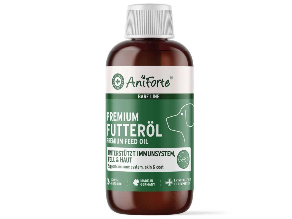 AniForte® Premium Feeding Oil pro psy je vysoce kvalitní doplňkové krmivo pro podporu vyvážené stravy. Kombinace olejů bohatých na živiny dodává vašemu mazlíčkovi esenciální polynenasycené mastné kyseliny a může podpořit vzhled jeho kůže a srsti.