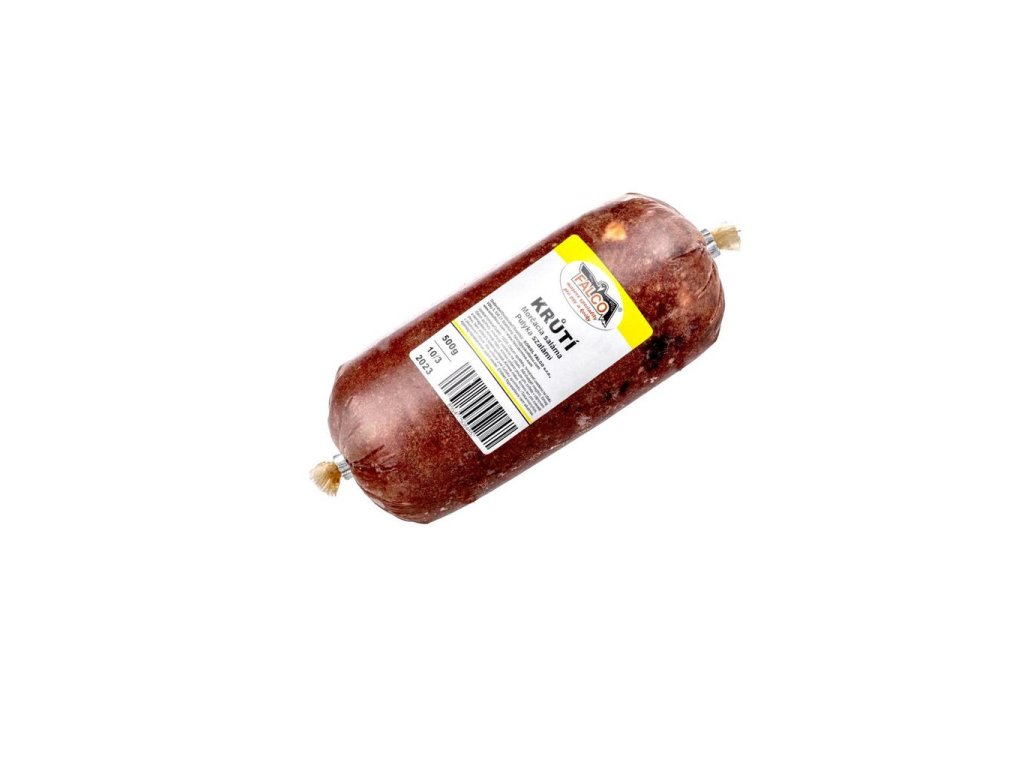 Mletá směs z krůtího masa, ořezu a směsi drobů. Vše obsažené v cca 500g balení. Salám je balen ve varném střevě, proto je možné vařit i s obalem.