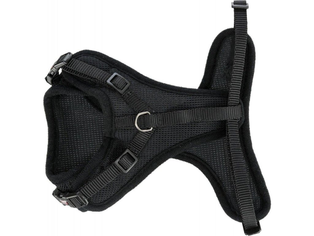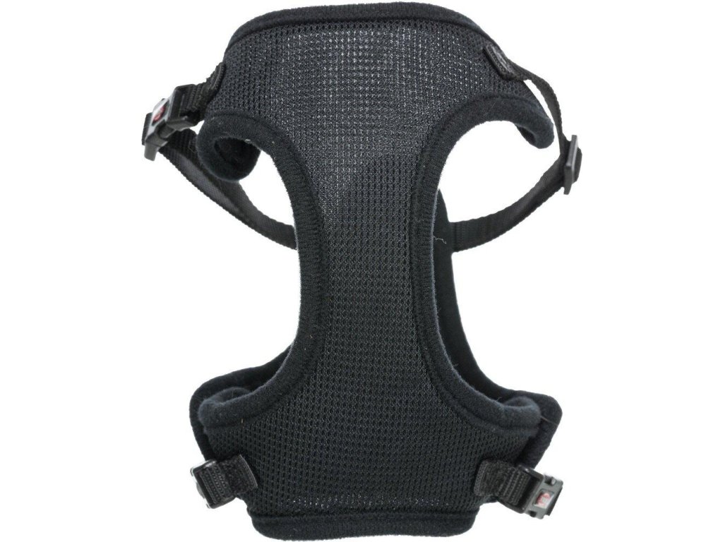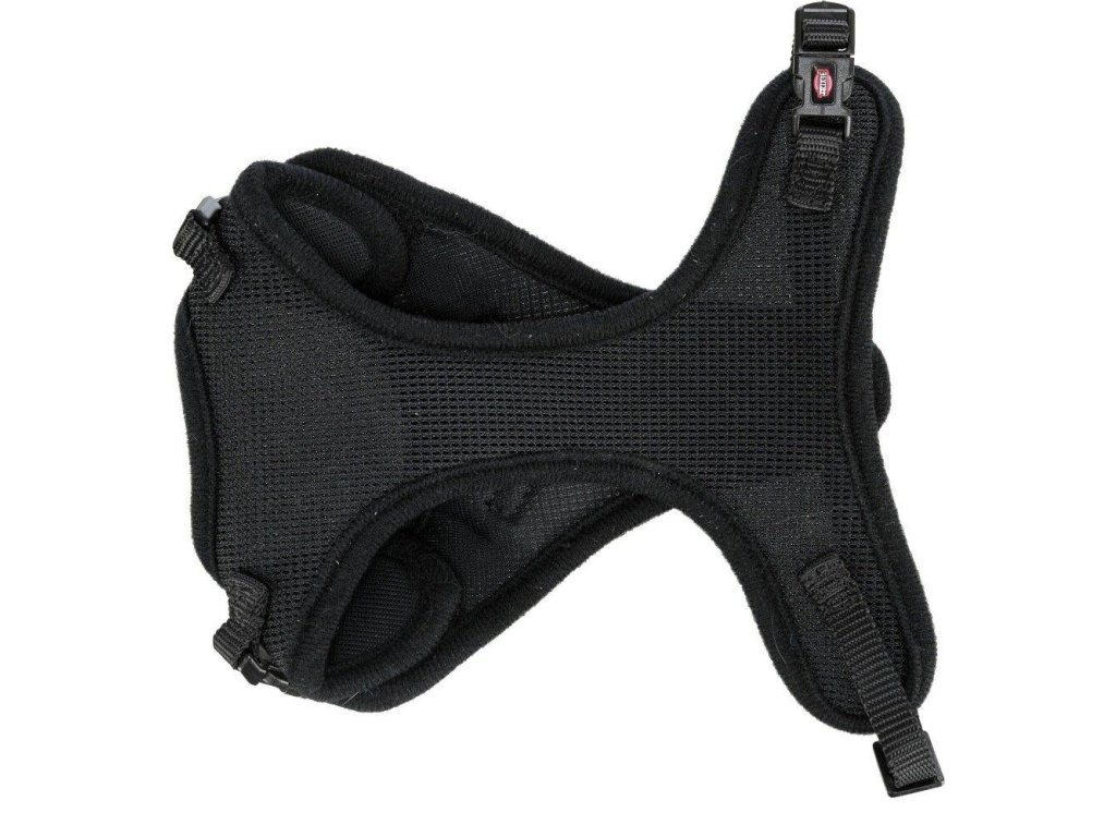 Elastické vodítko absorbující nárazy má prodyšný síťovaný materiál a měkké polstrování. Nastavitelný v oblasti krku a hrudníku přezkami.