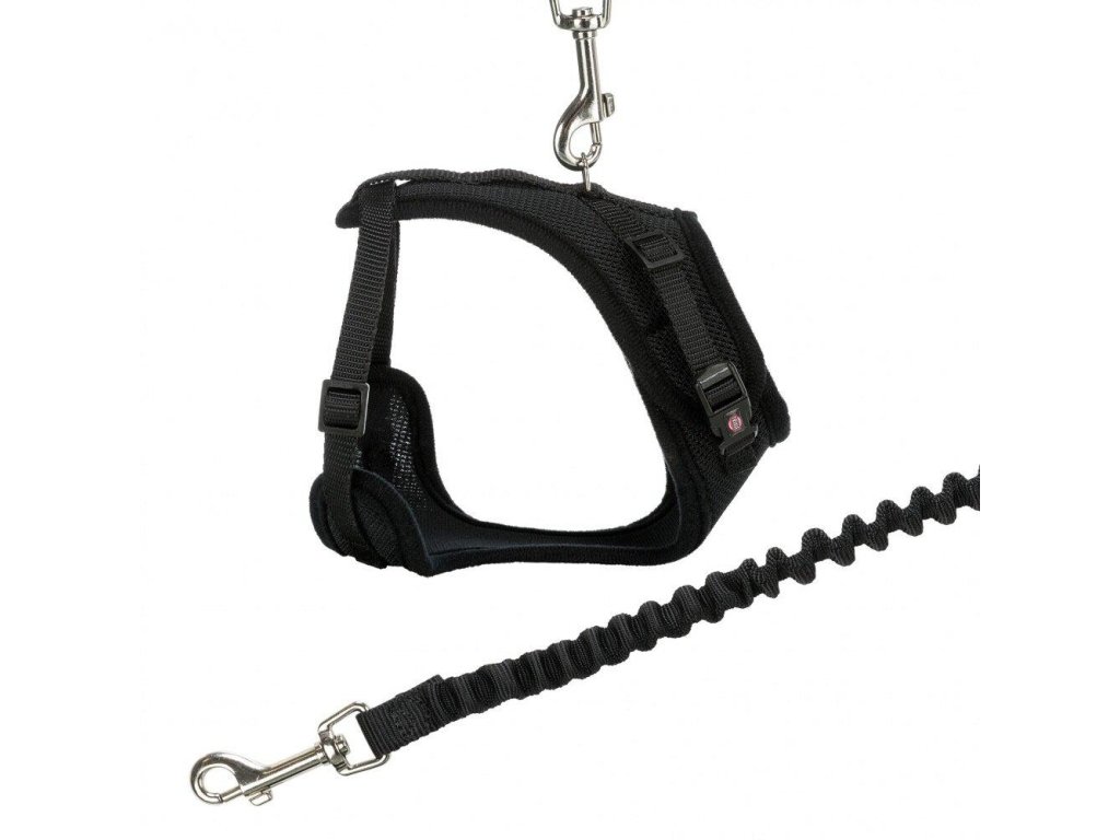 Měkký síťovaný Y-postroj s elastickým vodítkem pro kočku XL 39-60cm/1,00m - černý