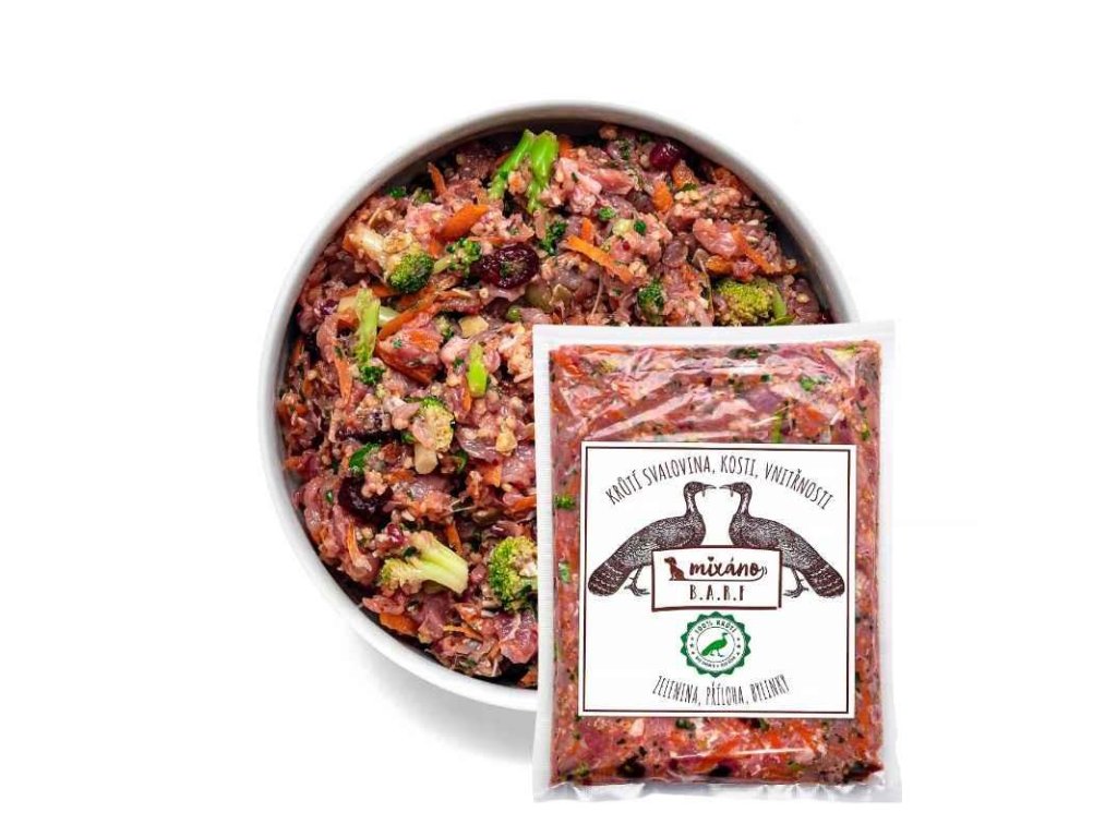 Krůtí směs z masa, vnitřností, kostí, zeleniny - BARF - mražený výrobek