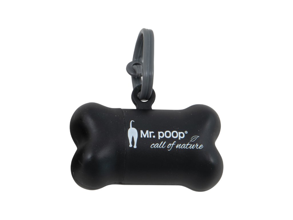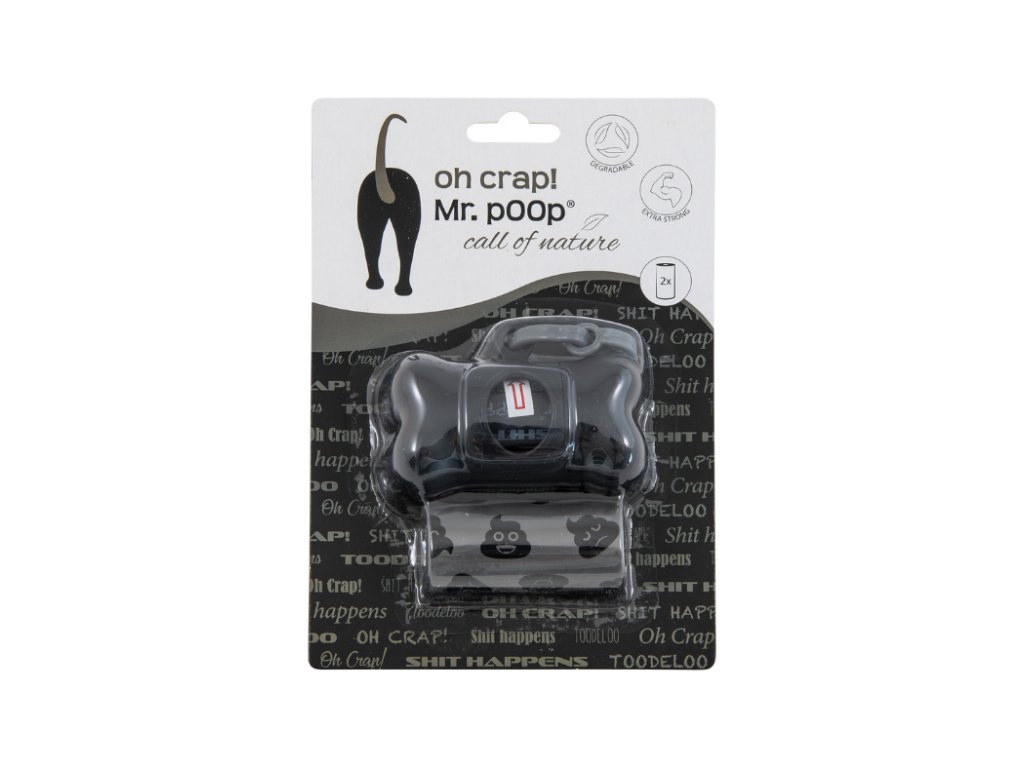 Mr. Poop Oh Crap zásobník černý + 2 rolky sáčků na exkrementy.