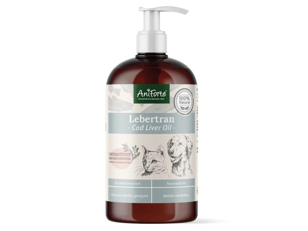 AniForte® olej z tresčích jater dodává vašemu zvířeti tyto esenciální mastné kyseliny a podporuje tak imunitní systém a přirozenou strukturu kostí. Vysoce kvalitní přírodní produkt je bez syntetických přísad jakéhokoli druhu a příznivě ovlivňuje vývoj a zdraví vašeho čtyřnohého přítele. AniForte® olej z tresčích jater přispívá k výživné stravě a je ideální pro barfování.