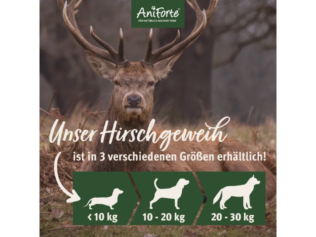 Jelení paroh AniForte® Hochland je novou přirozenou zábavou při žvýkání pro vašeho psa. Pro svůj pevný a robustní tvar je paroží vhodné jako trvalá žvýkací kost. Žvýkací paroh se nedrolí, jsou nízkotučné a díky svému 100% přírodnímu složení jsou vhodné zejména pro alergiky nebo psy s intolerancí. Jelení paroží vašemu pejskovi nabízí nejen spoustu zábavy, ale může mít i pozitivní a čistící účinek na zuby. Kousky parohu jsou nejen super chutné, trvanlivé a bez umělých přísad, ale obsahují také přírodní minerály.