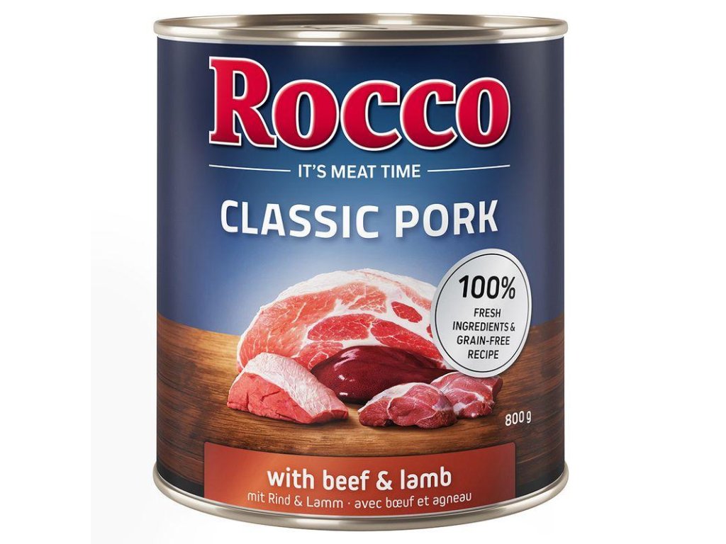 Rocco Classic Pork - masová konzerva pro psy - vepřové s hovězím a jehněčím masem 800 g
