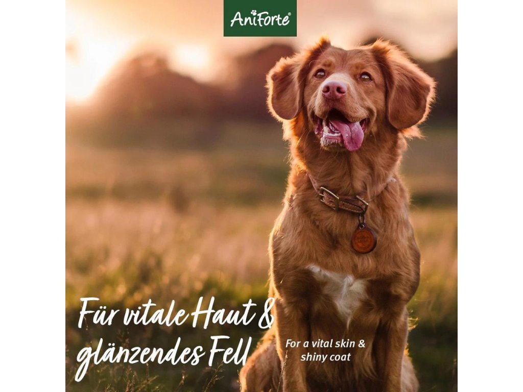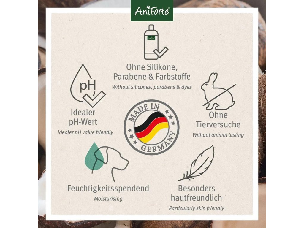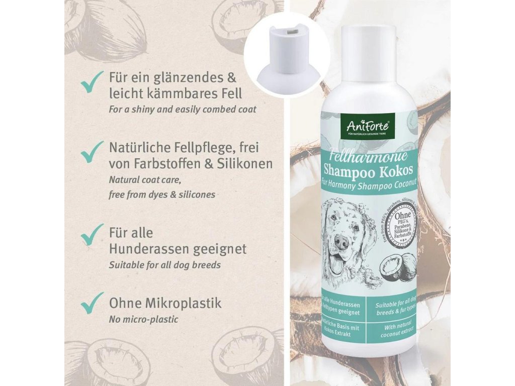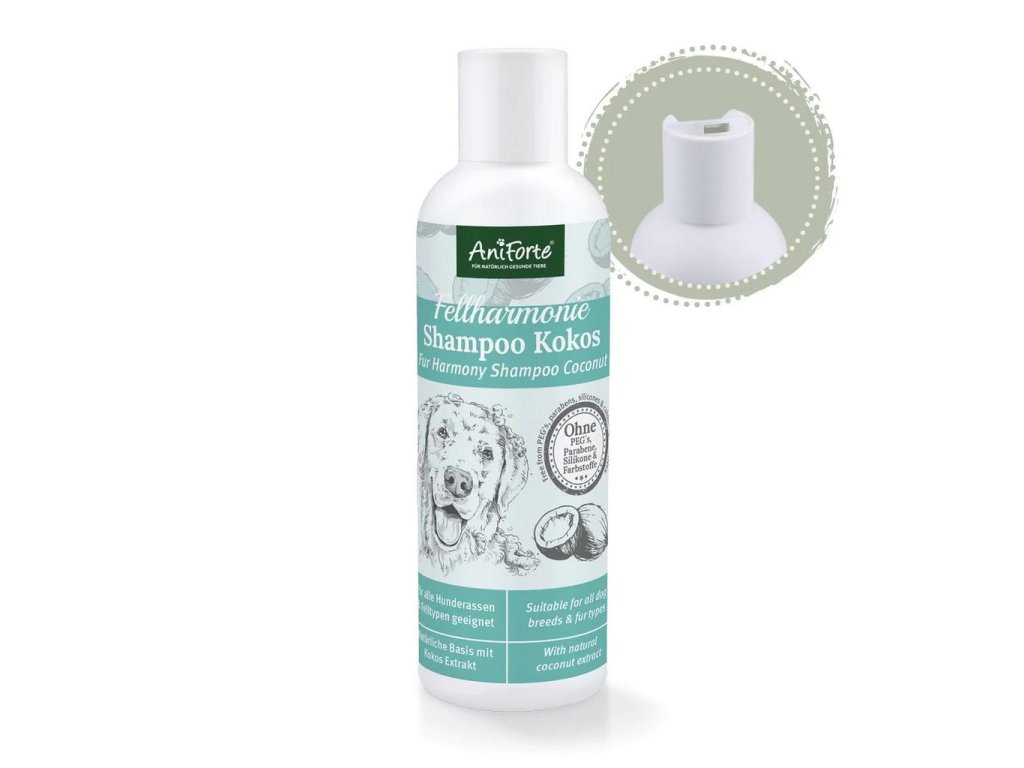 Šampon AniForte® Fellharmonie s extraktem z kokosového oleje a aloe vera je optimální pečující šampon pro vitální psí kůži a lesklou srst.
