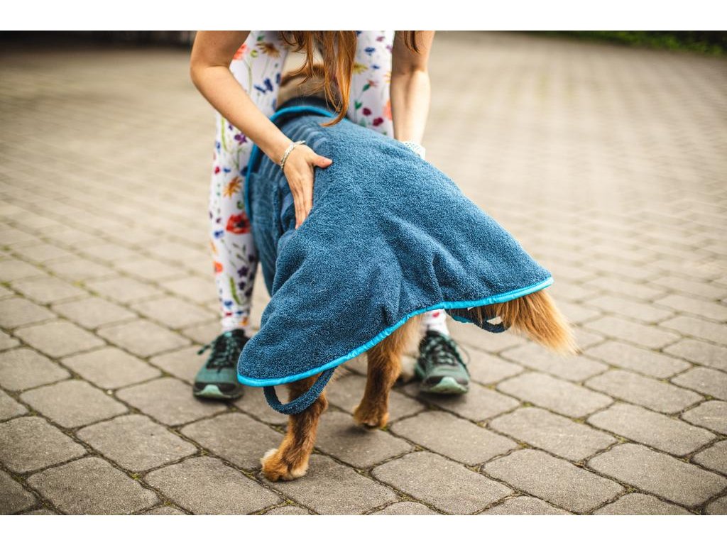 - Další výhodou je jednoduchá údržba sušícího županu pro psy, který po znečištění jednoduše hodíte do pračky nebo jen ručně přeperete v teplé vodě a pověsíte na šňůru, popřípadě do sušičky prádla.