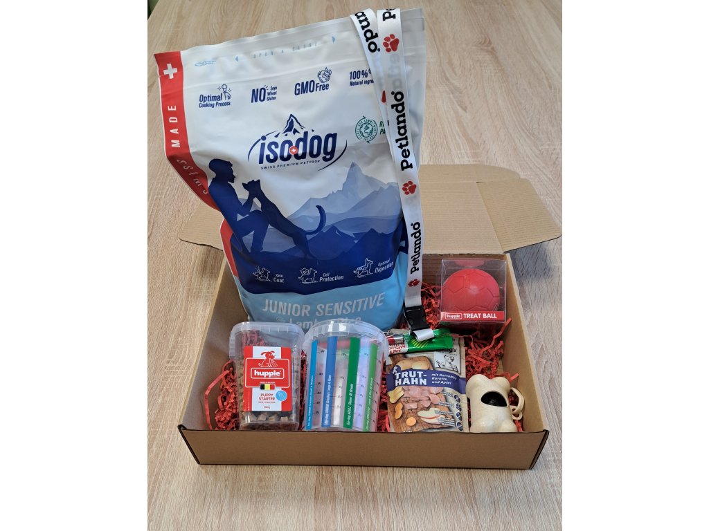 Pro jeho šťastný start do života. Udělejte svému štěněti radost dárkovým balíčkem Petlando. Najdete v něm kvalitní kmivo, Betty's kapsičku, belgické psí pralinky, kelímek - odměrka Isodog, klíčenku, propisku, balónek, sáčky na exkrementy a pastu lickimat churu v hodnotě 750Kč