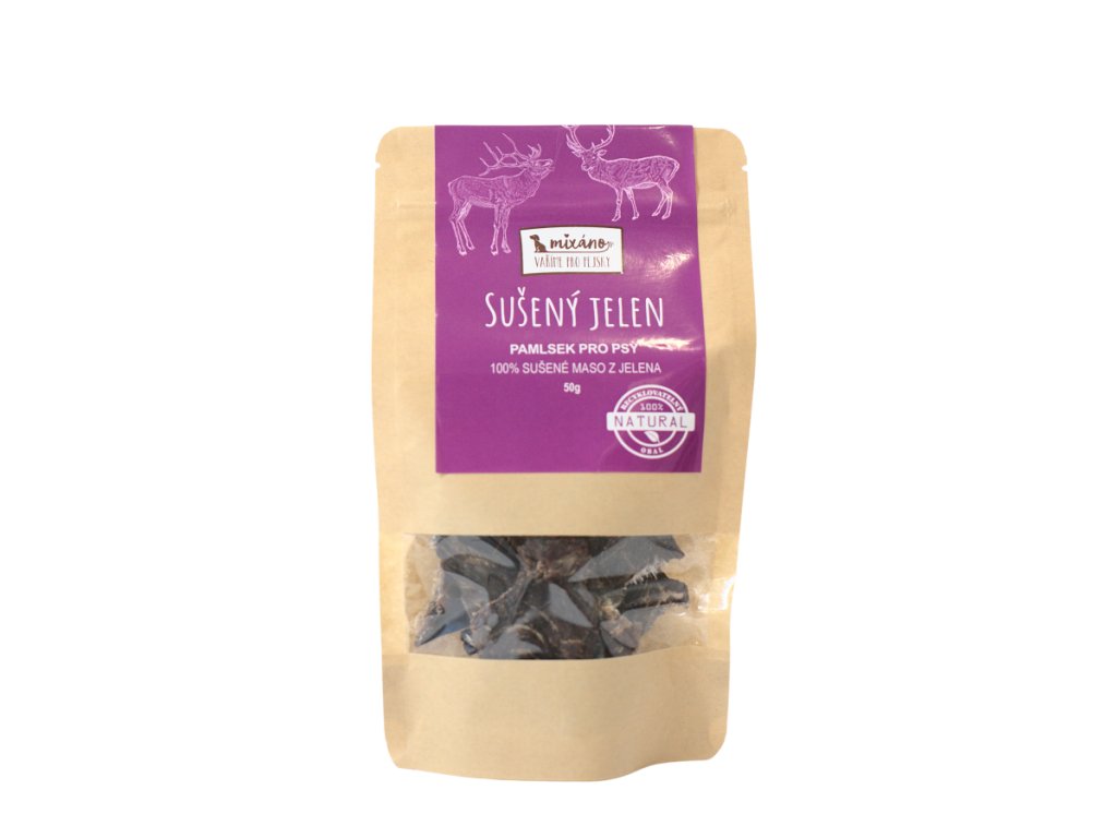 Mixáno pamlsky jsou určeny jako odměna pro všechny pejsky starší 6 měsíců. Pamlsek je vyroben ze 100% jeleního masa.