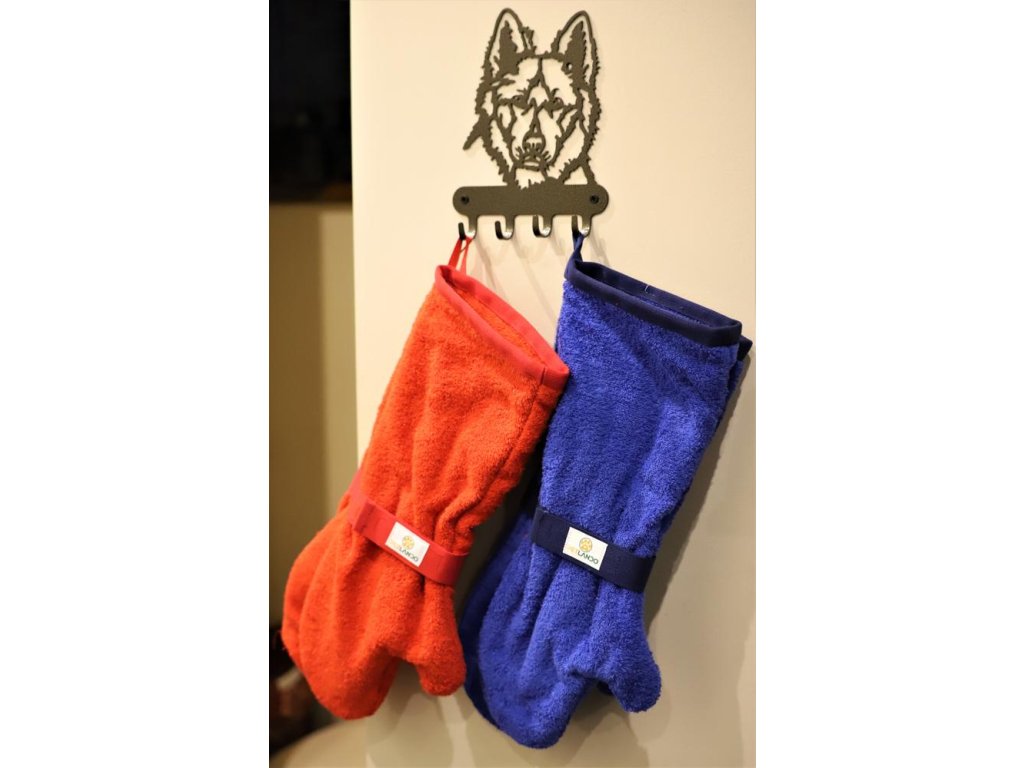 Sušící rukavice jsou ušité z dvojitého a savého bavlněného froté, které dobře absorbuje mokré nečistoty. Při každodenním užívání na nich oceníte háček na zavěšení, pohodlnou gumu a pásek se suchým zipem ideálním pro každou velikost zápěstí.