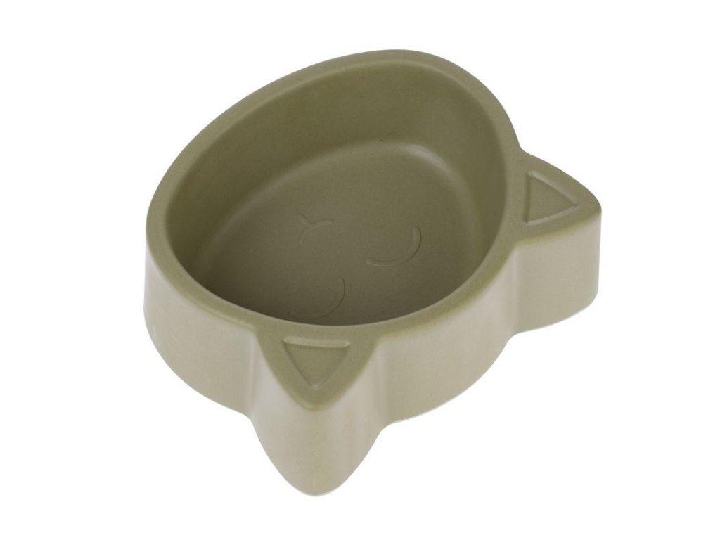 Ekologická miska na krmení pro kočky , na vodu nebo suché a mokré krmivo, ve tvaru kočičí hlavy s náhubkem na dně, recyklovaný materiál ze skořápek ořechů , snadno se čistí.