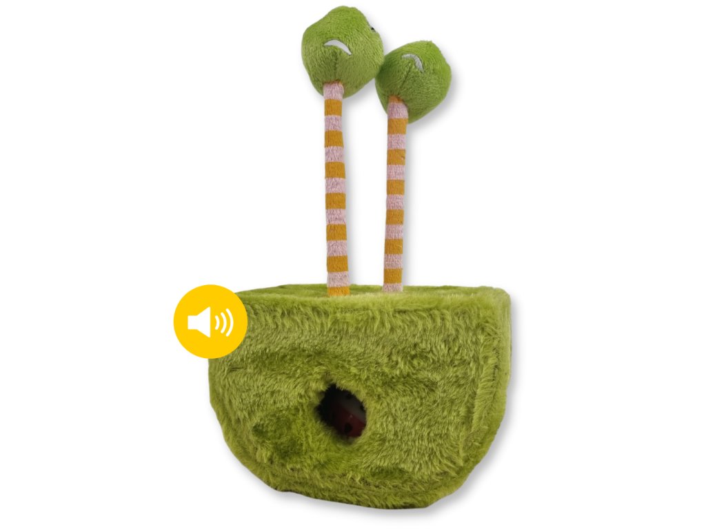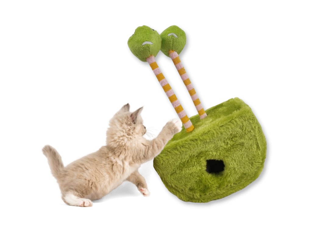 Hračka se pohybuje tam a zpět, když se kočka dotkne hračky.