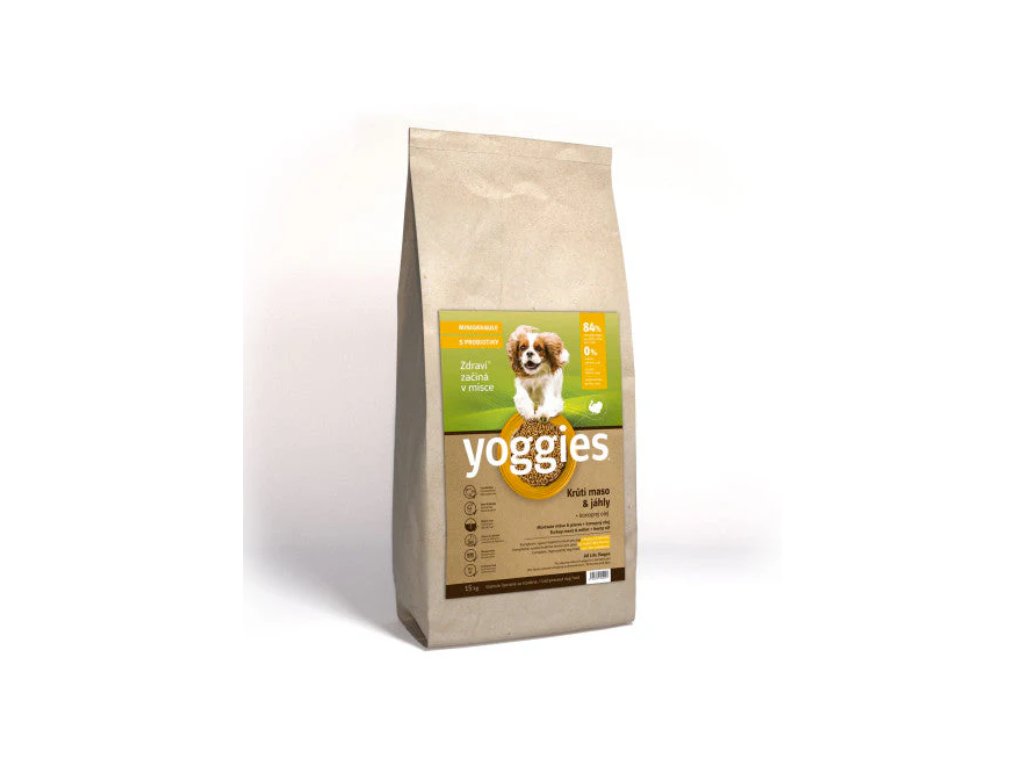 Granule Yoggies jsou vyráběny šetrným způsobem – lisováním za studena. Díky tomu si zachovávají přirozenou masovou chuť a důležité živiny. Vyrobeny jsou pouze z kvalitních farmářských surovin bez obilovin, sóji a umělých přísad. Obsahují 84 % kvalitního masa (před sušením). Granule jsou snadno stravitelné, a díky probiotikům posilují imunitu a zdravé trávení v každém psím věku.