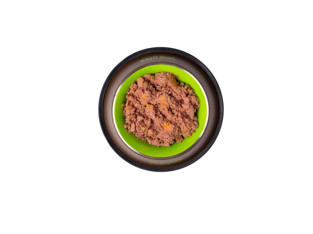 Yoggies® Krůtí konzerva s batáty a bodlákovým olejem je připravena k okamžitému podávání – stačí ji servírovat při pokojové teplotě. Pes by měl mít vždy k dispozici dostatek čerstvé vody.