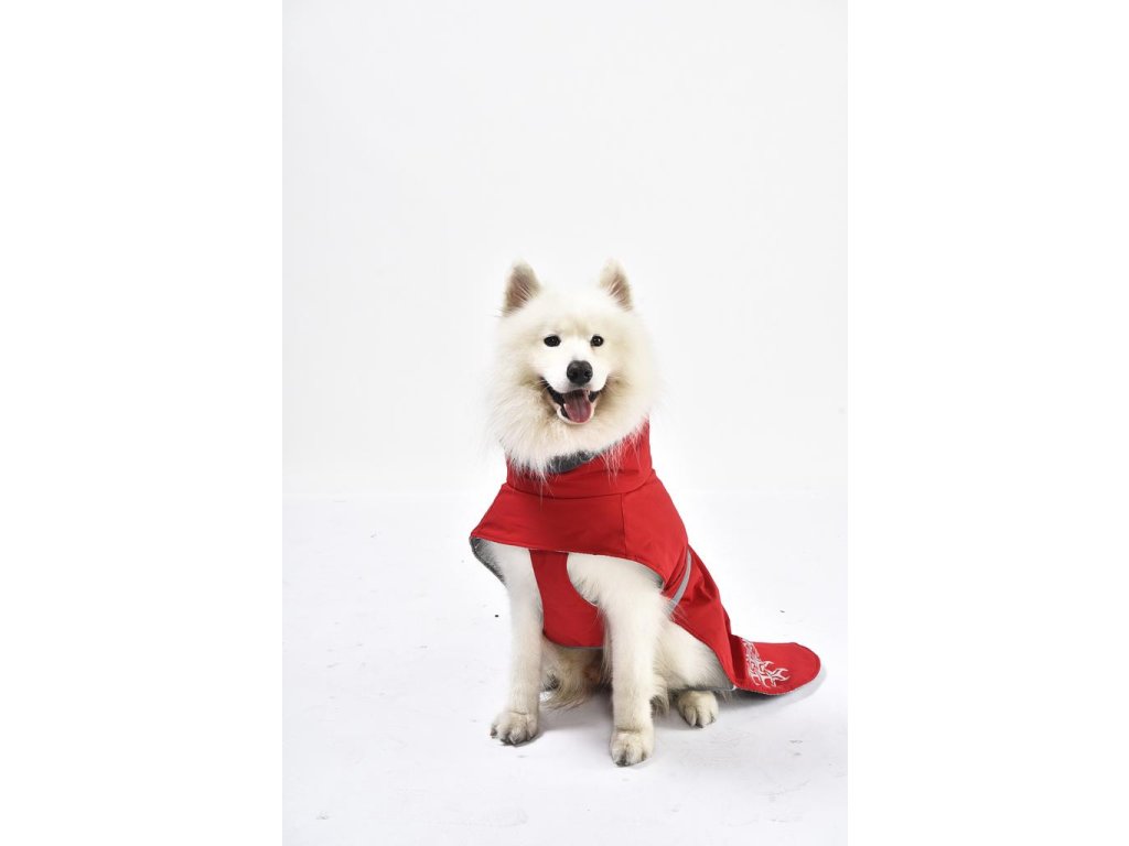 - Voděodolný a zateplený materiál drží psa v teple v chladných i mrazivých dnech
